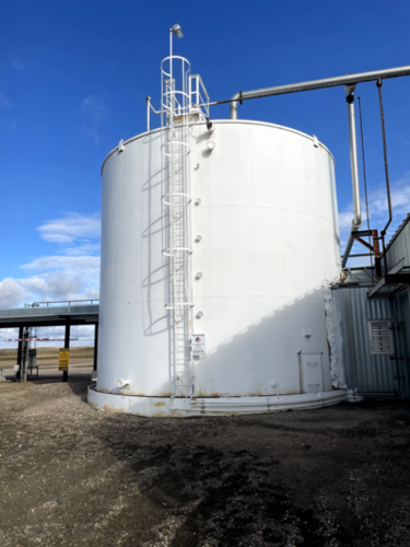 Available for sale: a 2500 BBL (400M3) coated sales tank manufactured by G.L.M. Industries in 1985. This tank is heated, operational, and located in Lloydminster, SK. It features a sweet service type and is constructed without insulation or double walls. Condition: C.