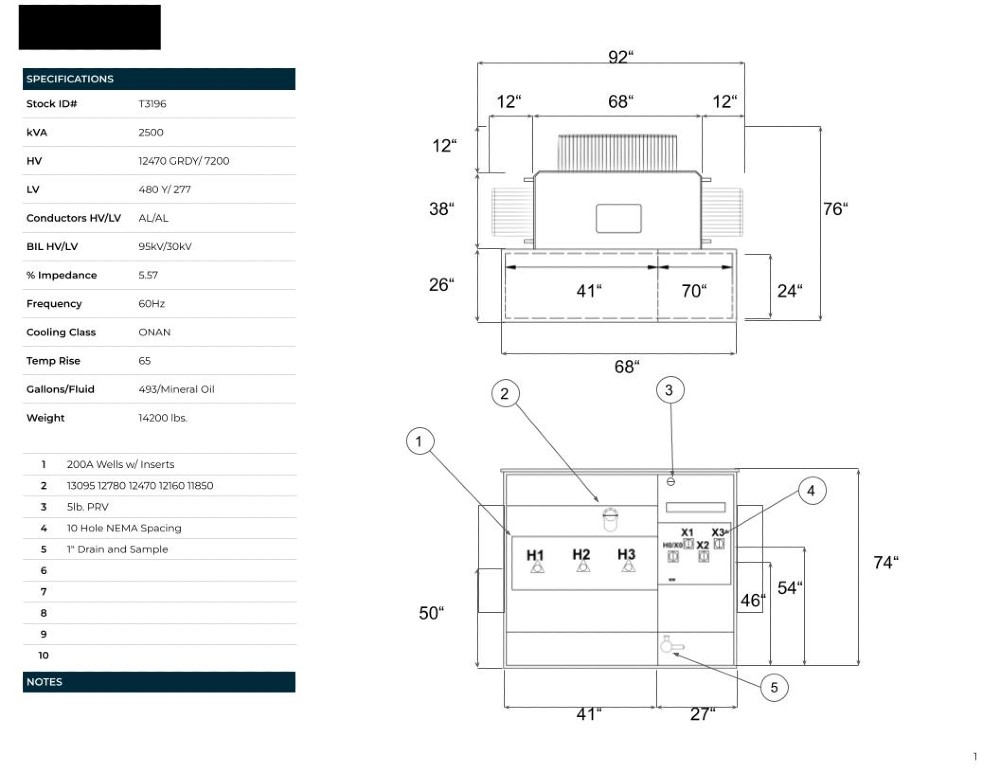 2500 kVA 12470GrdY/7200 Primary, 480Y/277 Secondary, PAD, Recon(shipment available in 10 days)