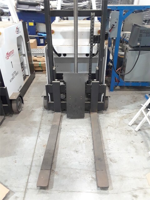 2500 lb. Toyota #8BWS13, walkie straddle stacker forklift, 143" rise, 56.4" turning radius, 2020