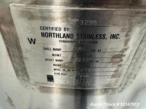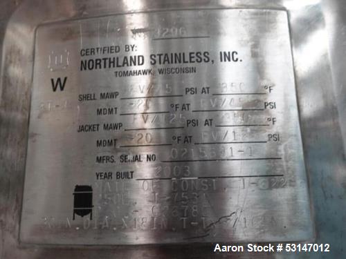 26 gallon Northland Stainless, Inconel Reactor, 45/FV psi @ 350°F MAWP, 125 psi @ 350°F Jacket Manufacturer: Northland Gallons: 26.00 Pounds per Square Inch: 45 Stock # 53147012 Request a Quote 7 For Sale by Aaron Equipment Co Surplus Record Dealer Since 2024 Contact Seller Schaumburg, IL Ken Matuszak 708-41...> Show Seller's Phone Number 708-412-6077 Let the seller know you found their listing on Surplus Record! View More Aaron Equipment Co 's ListingsDescription used- northland stainless inconel reactor, 100-liter (26 gallon), constructed of i-622 alloy. rated for a maximum allowable working pressure (mawp) of 45 psi/full vacuum at 350 degrees fahrenheit. jacket rated for 125 psi at 350 degrees fahrenheit. multiple top inlets, clamps and probes, dished bottom. forklift ready, mobile on casters. national board number 3296. serial number 0215631-1. includes lightnin agitator with control panel. previously used in biotech operation. Request More Information from SellerGet Your Price from Aaron Equipment Co! "*" indicates required fieldsName*Company*Email* PhoneZip / Postal Code*QuestionMake an OfferRequests Send me a shipping quote I am interested in financingSend Copy Email me a confirmation of this inquiryBuyer Protection Use our partner Escrow.com to buy or sell equipment safelyBuyer Protection Send me info about buyer protectionThis field is hidden when viewing the formDealer Email Buyers Who Viewed This Listing Also Viewed … 27.2 gallon Precision Stainless, Stainless Steel vertical, 20" diameter x 26" straight side, 45 psi/FV Internal, 100 psi/FV Jacket, 250°F, 1998 (2 available)Category: ReactorsSeller: Aaron Equipment CoLocation: Coal City, IL Mfr: Precision StainlessYear: 1998used vertical 316l stainless steel board rated thaw vessel, built by precision stainless. 103 liter / 27.2 gallon capacity. approximate 20" diameter x 26" straight side. dished removable top head, dished bottom head. 304l stainless steel dimple jacket, rated 100psi / fv at -20 to 250 degrees f. internal rated 45psi / ...more 26.41 gallon Precision, Reactor, Stainless Steel, 20" diameter x 22" straight side, 45 psi/FV Internal, 100 psi Jacket, 350 F, 0.15 HP, 1994Category: ReactorsSeller: Federal Equipment CompanyLocation: Cleveland, OH Mfr: PrecisionYear: 1994Used 100 Liter Precision Stainless reactor, 316L stainless steel construction, approximately 20" diameter x 22" straight side, dish top and bottom, rated 45 psi and full vacuum at 350 f internal, jacketed for 100 psi and full vacuum at 350 f, top mounted off center.15 hp, agitator drive, serial# 7984-2, national ...more 25 gallon DCI, 316L Stainless Steel reactor, jacketed, agitated, 45/125 psi, 1993Category: ReactorsSeller: Machinery & Equipment CoLocation: Brisbane, CA Mfr: DciYear: 1993400-Liter (105 Gallon) 316L Stainless Steel Reactor Vessel. Manufactured by DCI Inc. Rated for a maximum allowable working pressure (MAWP) of 45 PSI, Jacket rated for 125 PSI. Multiple top inlets, clamps and probes, dished bottom. Forklift ready, mobile on casters. Manufactured 1993. Vessels measures approximately 35 ...more 25 gallon Stainless Steel Reactor Body, 24" diameter x 15" Straight Side, 30 psi Internal, Dished HeadsCategory: ReactorsSeller: Perry Videx LLCLocation: Hainesport, NJUsed Approximately 25 Gallon Stainless Steel Reactor Body, Capacity: 25 gallons, Dimensions: 24" dia. x 15" straight side, Dished heads, Internal rated 30 psi, Lug-mounted, Additional information: 5" agitator mount, 3", 3-1/2", 5", 1-1/2", 3-1/2" top openings. 1-3/4" bottom outlet., _UNKNOWN_ 25 GALLON, Capacity. 25 ...more 26 gallon Mueller, Sanitary Reactor w/Bottom Mounted Mixer, 20" diameter x 20" T/T, 3' 3" OAH, 1/4 HP, 230/460 voltCategory: ReactorsSeller: EcReCon Inc.Location: Pedericktown, NJ Mfr: Mueller, 26 Gallon (100 Liter) Sanitary Mueller Reactor / Fermenter with bottom mounted mixer. Rated 60 PSI/FV @ 300 Deg.F. both shell and Jacket. 20" Dia.x 20" T/T. 3'3" OAH. Magnetic drive mixer with 1/4 HP, 230/460 volt, XP motor. Unit mounted on wheels. Last used in pharmaceutical plant in sanitary application. ...moreShare × "*" indicates required fieldsYour Name*Your Email* Recipient's Email* Note to Recipient
