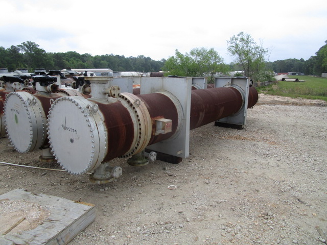 ITEM NO : 105759 QTY : 1 ALLOY : C SQ.FT. : 2832 MATERIAL (S) : CS MATERIAL (T) : CS MATERIAL (H) : CS PSI (S) : 314FV PSI (T) : 301FV TEMP. DEG. F (S) : 450 TEMP. DEG. F (T) : 480 TUBE DIAMETER IN" : .75 TUBE LENGTH FT'IN" : 20'0" TUBE HOLES : 365 TUBE PITCH : 1" SQ TUBE WALL : .083" PASSES (S) : 1 PASSES (T) : 2 V/H : H CODE : NB TEMA TYPE : AEU SHELL NOZZLES : 8', 10" TUBE NOZZLES : (2) 8" NO. OF BAFFLES : 16 BAFFLE SPACING : 1'1" SHELL DIAMETER FT'IN" : 2'10" O.A.L FT'IN" : 25'4"