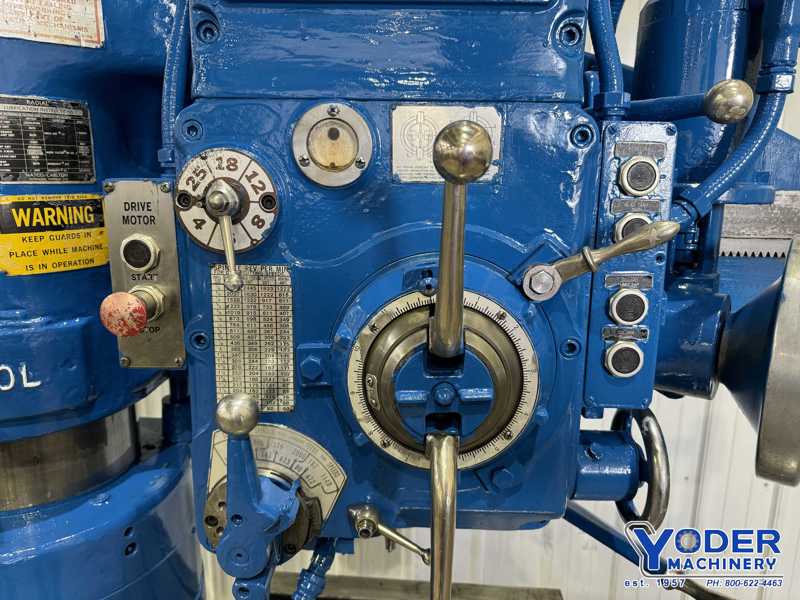 WORKING AREA OF BASE.: 54" X 36" SPINDLE RPM.: (12) 80 TO 1500 FEEDS.: (6).004 TO.025 IPR SPINDLE TRAVEL.: 12" TAPER IN SPINDLE.: #4MT DIAMETER OF SPINDLE.: 2-1/2" DISTANCE SPINDLE TO BASE.: 26" MINIMUM, 54" MAXIMUM TRAVEL OF ARM ON COLUMN.: 28-1/2" TRAVEL OF HEAD ON ARM.: 39" POWER COLUMN CLAMP.: YES POWER ...more