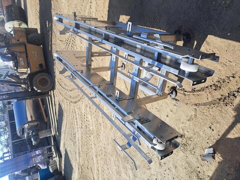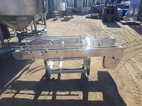 4" wide dual conveyor, stainless steel construction with plastic belt, 4" wide x 104" long driven section, with 8" wide x 188" long 'idle' section (no motor).