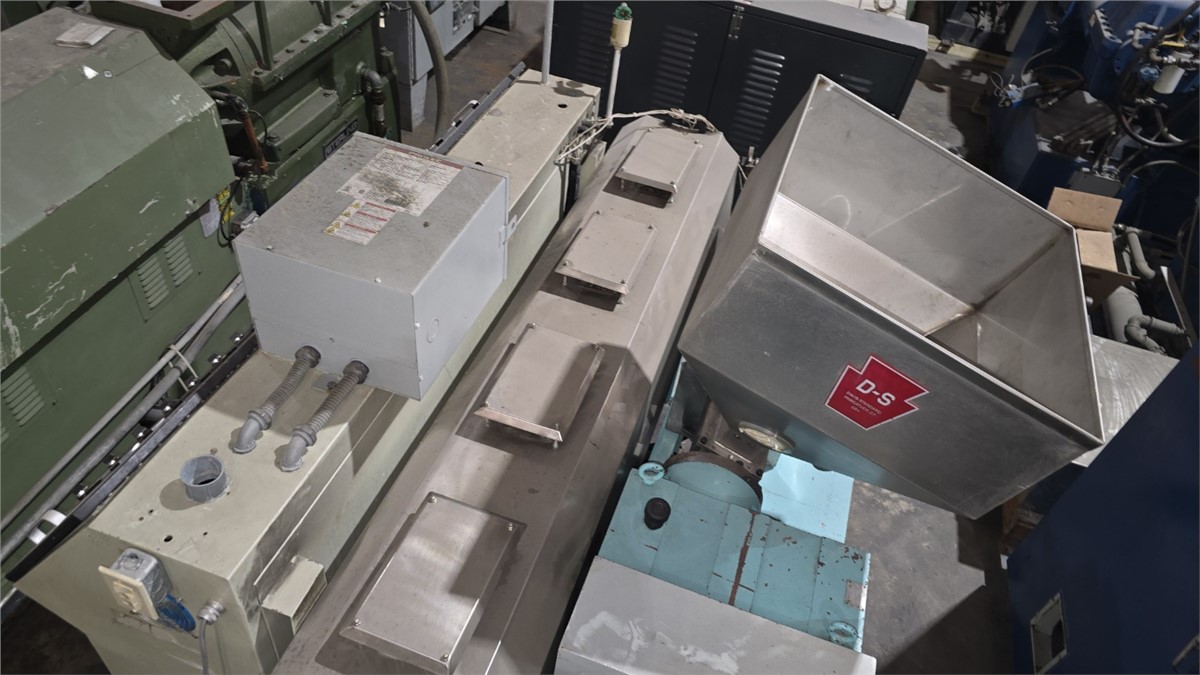 90mm Ø screw (replaced 6 years ago) 16:1 L/D cold feed jacketed vacuum vented barrel power roller feed 6-zone temperature control unit (TCU) straight head microwave oven, 20’ long conventional oven with 5 sections: Section 1 @ 13’, Section 2 @ 16’ L, Section 3 @ 20’ L, Section 4 @ ...more