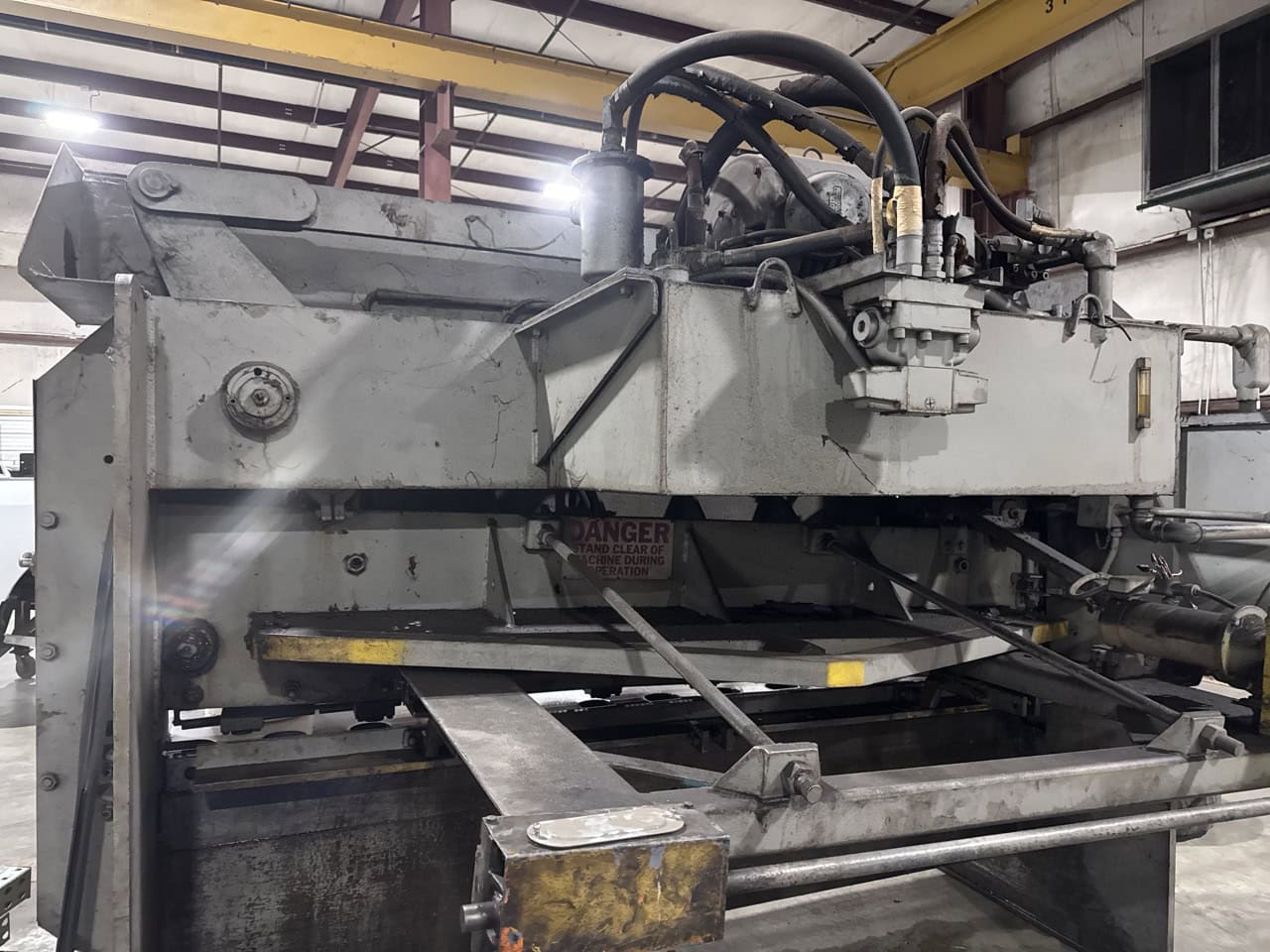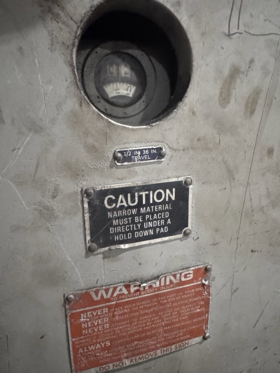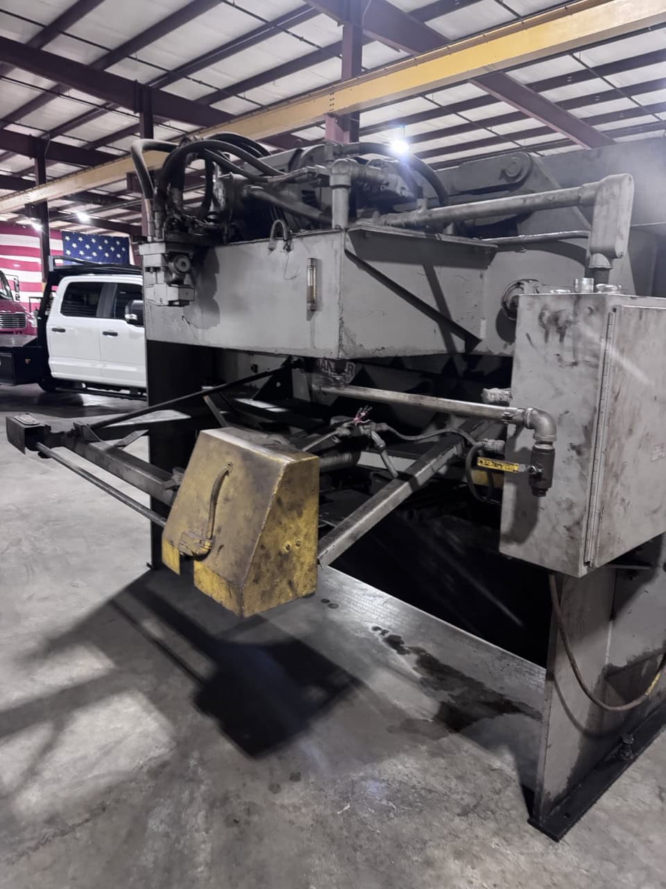 Capacity to Mild Steel/A36 3/8" x 6' Capacity to Stainless Steel 1/4" x 6' Shearing Tons 60 tons # of Hold Downs 7 Bore of Hold Downs 2 inches Hold Down Force 25 tons Backgauge Travel 36 inches Rake (In Inches per Foot).4 inches Blade Size 1" x 3" x 76" Horsepower 25 HP Strokes Per Minute Full Width Cut: 16 ...more