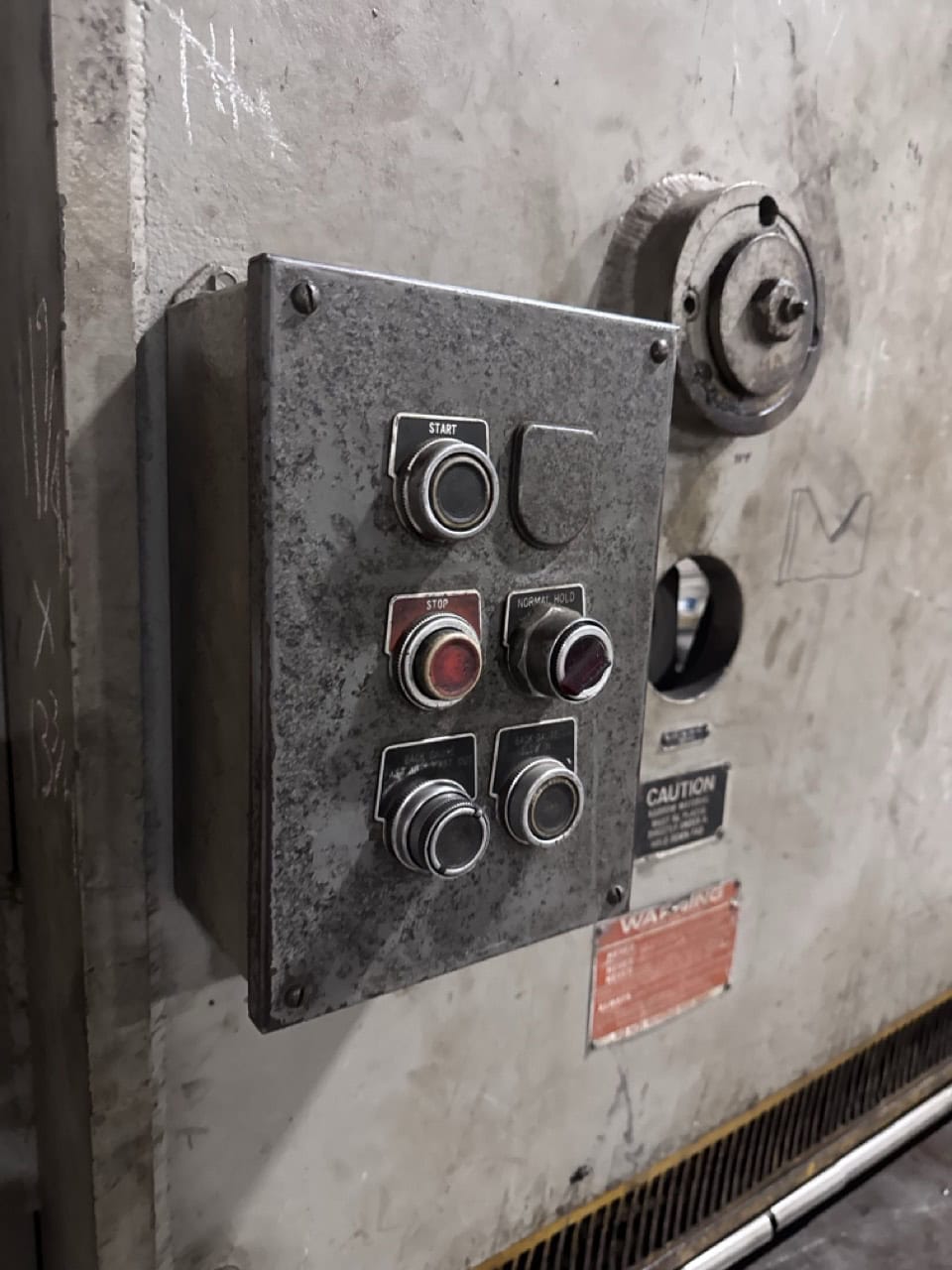Distance between housings. 8'3" LR, Holddowns. 9, Holddown total pressure (tons). 23, Rake. 1/2 IPF, Four-Edge knife size (L x Face x W). 8' x 4" x 1", Throat. 18", Distance floor to pass line. 34-3/4", Back Gauge Range. 36", Weight. 26.000 lbs., O.A. Dimensions.(lr x fb x high). 7'6" x 10'4" x 9' ...more