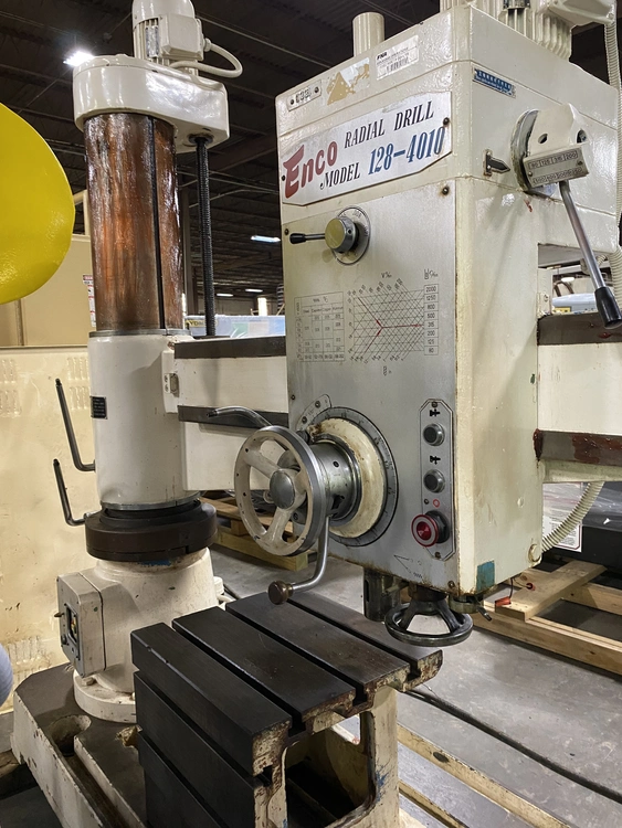 Cincinnati Radial Drill, -Arm Length: 3', -Column Diameter: 9", -Base Height: 6", -Base Work Surface, T-Slotted: 30" x 48", -Head Radius, Minimum/Maximum: 16.50" - 43", -Spindle to Base, Minimum/Maximum: 15.75" - 53", -Vertical Travel of Arm: 27.25", -Spindle Travel: 10", -Horizontal Head Travel: 36.5", -Spindle ...more