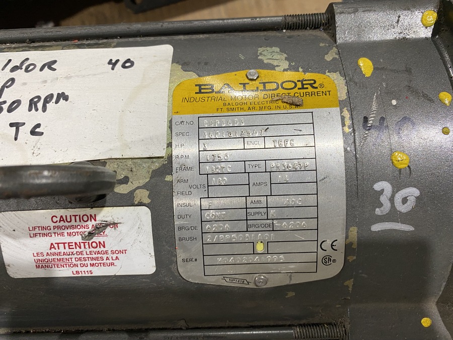 3 HP 1750 RPM Baldor, Frame 182TC 180 Volts