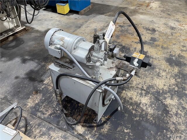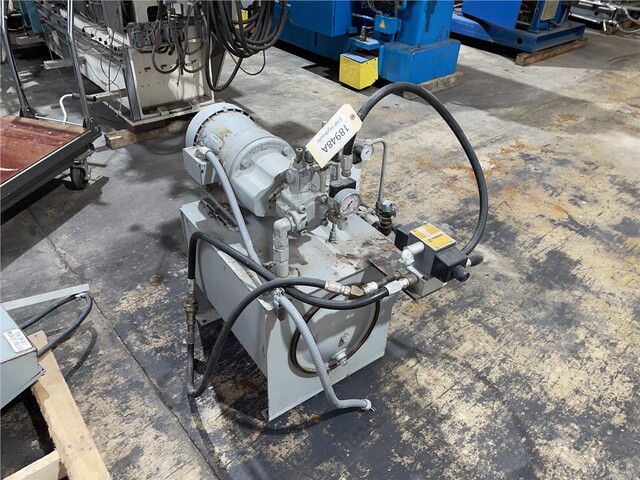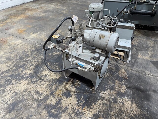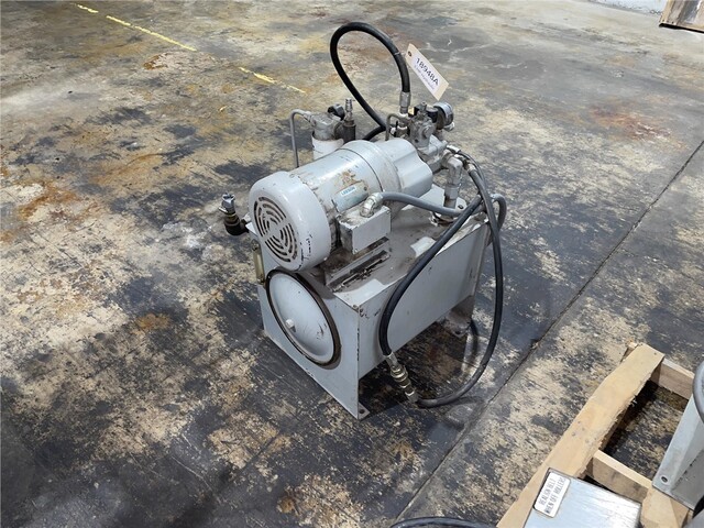 Used 11/5.5 kw EHA (Electro-Hydraulic Automation) dual hydraulic power pack, model B2030-14170FA, with dual 3 hp pump heads mounted on reservoir, 208-230/460 volt, 3 phase, serial# 769249-12KMF.