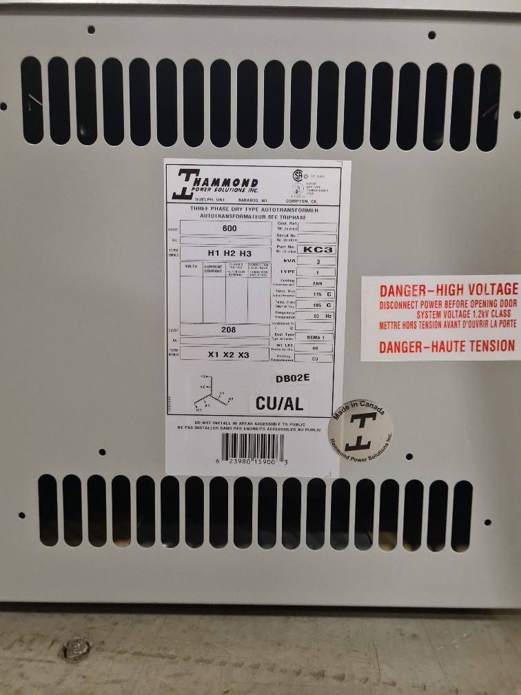 3 KVA 600Y Primary, 208Y Secondary, Hammond, auto transformer, no taps Manufacturer: Hammond KVA: 3.0 Primary Voltage: 600 Secondary Voltage: 208 Stock # A433972U Request a Quote For Sale by Lizco Sales & Rentals Surplus Record Dealer Since 1992 Contact Seller London, ON Jacob Peters 519-84...> Show Seller's Phone Number 519-842-6458 Let the seller know you found their listing on Surplus Record! View More Lizco Sales & Rentals ' ListingsDescription Request More Information from SellerGet Your Price from Lizco Sales & Rentals! "*" indicates required fieldsName*Company*Email* PhoneZip / Postal Code*QuestionMake an OfferRequests Send me a shipping quote I am interested in financingSend Copy Email me a confirmation of this inquiryBuyer Protection Use our partner Escrow.com to buy or sell equipment safelyBuyer Protection Send me info about buyer protectionThis field is hidden when viewing the formDealer Email Buyers Who Viewed This Listing Also Viewed … 3 KVA 600Y/346 Primary, 400Y/231 Secondary, 3 phase, Dry Type Autotransformer, Ready To Ship, NewCategory: 60 Hz Three Phase TransformersSeller: Maddox Industrial TransformerLocation: Greenville, SC 3 KVA 600 Primary, 480Y/277 Secondary, Rex ManufacturingCategory: 60 Hz Three Phase TransformersSeller: RS Breakers And ControlsLocation: Saskatoon, SK Mfr: Rex3KVA 600V Primary, 480Y/277V Secondary, NEMA Type: Type 1, Connection: Δ-Y, Quality: Used, Quantity: 1, Pricing and pictures are available upon request. 3 KVA 504/456 Primary, 240 Secondary, General Electric 9T21A4019, type MLCategory: 60 Hz Three Phase TransformersSeller: Ingalls Process EquipmentLocation: Painesville, OH Mfr: General ElectricOne (1) used 3 kVA Transformer Manufactured by Electric Model: 9T21A4019 3.0 kVA, 60 Hz, 3 phase Type: ML Can transform between 456V - 504V and 240V. 3 KVA 277 Primary, 120/240 Secondary, Square D #3S8F, 10 amps., 1-phase, NEMA 3RCategory: 60 Hz Three Phase TransformersSeller: OK Sales IncLocation: Burlington, NC Mfr: Square DSquare D 3S8F Purpose Transformer 277V to 120/240V 10A 1 Phase NEMA 3R., Condition Notes: 3KVA; Pri: 277V Sec: 120/240V; 1PH; 3R Enclosure., New Old Stock. Surplus Inventory. Item pictured is the exact item you will receive. May show some signs of wear due to age and storage., Items ship same or next business day of ...more 3 KVA 10800 Primary, , General Electric JVS-150 Super Bute outdoor voltage transformer, 90/150 ratio, newCategory: 60 Hz Three Phase TransformersSeller: Equipment Recovery CorpLocation: Willoughby, OH Mfr: General ElectricBrand: GE, Condition: NEW, Model: JVS-150, Type: 766X030705, Serial: 104858, Power Rating: 150 KV, 10800 PRI. VOLT, 90/150 & 90/150:1 RATIO, 60 HZ, 3.0 KVA @ 30C AMB, Weight: 270 LBS., Category: TRANSFORMERS, ERC #: RX-3127, Job #: 043, Additional Notes: SHIPPING DIMENSIONS: 20" x 31" X 35".Share × "*" indicates required fieldsYour Name*Your Email* Recipient's Email* Note to Recipient