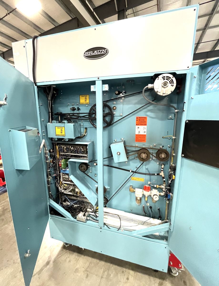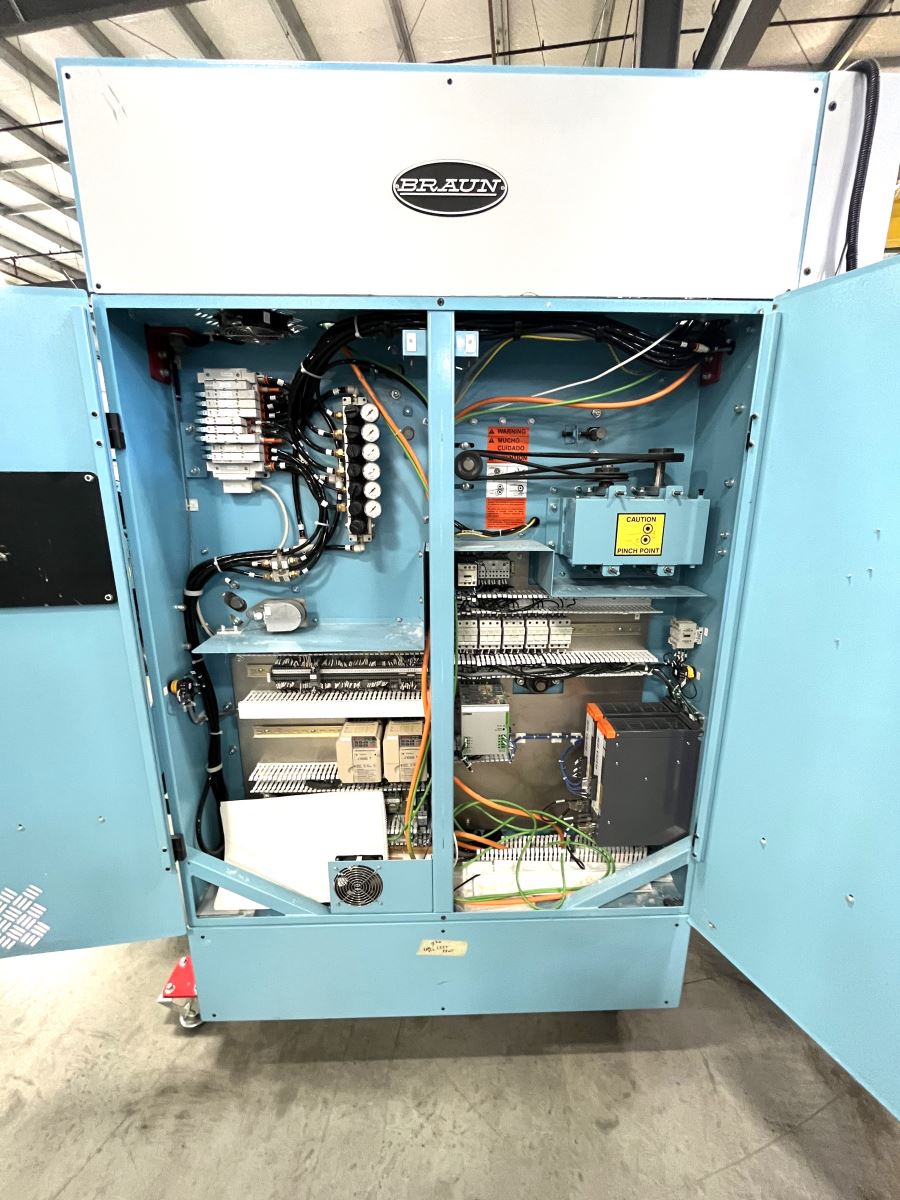 Used Braun 3-Station Spreader Feeder, Model PS3SF-130, Microprocessor Control, Variable Frequency Drive, Year 2017, Serial Number MPS111730455T, 480v/60cy/3ph UM-8849 Used, Model PS3SF-130, Braun 3-Station Spreader Feeder from RW Martin