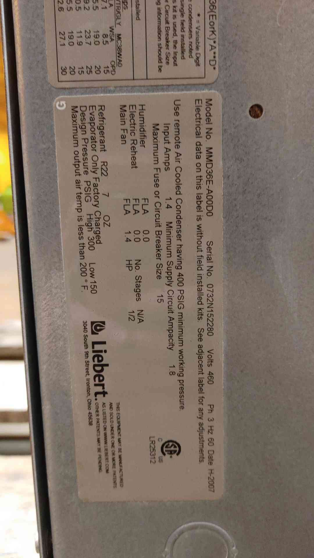 3 Ton, Liebert #MiniMate-MMD36E-A00D0, Ceiling Mount AC, 460 V., 3PH (2 available) Model: MINIMATE-MMD36E-A00D0 Tons: 3 Stock # 106357 Price: $1,200 USD Request Info 5 For Sale by Quantum Technology Surplus Record Dealer Since 2024 Contact Seller Shippensburg, PA Sales Dept. 484-74...> Show Seller's Phone Number 484-749-8600 Let the seller know you found their listing on Surplus Record! View More Quantum Technology 's ListingsDescription Details*Local Pickup Does Not Include any Palletization* '*Handling times for freight shipments average 5 days, but may vary depending on size, weight, location, and current trucking conditions. This does not include shipping time.*Keep your spaces cool and cozy with the Liebert 3 Ton MiniMate Ceiling Mount AC. Perfect for various settings, its compact design fits seamlessly in ceilings, saving precious floor space. - Efficient 460V operation for reliable performance- 3-phase power for consistent cooling- Ideal for small to medium spaces- Easy installation and maintenance- Whisper-quiet operation for peace and quietWhether its a commercial setup or a personal space, this AC unit delivers optimum temperature control with ease. Enjoy a comfortable environment without compromising on space.Please be aware that item descriptions are provided as-is without any warranties or guarantees of accuracy. We strongly recommend using this content as a starting point for further research and consultation with relevant experts or authorities. We disclaim any liability for damages or losses resulting from the use or reliance on this content.We can ship international freight. Please contact us if you have any questions or issues checking out.IMPORTANT: The sale includes only items in the picture. No other accessories not in the picture are included. If you feel something is missing please reach out to us before buying. No returns will be accepted due to items not in the picture. Thanks for your understandingThe equipment is used, as such it may have some blemishes, light surface scratches not affecting operation. If you need more details about your particular equipment, please email with questions.Generators do not ship with batteries due to DOT regulations.Datacenter and computer equipment we sell does not include hard drives.. Request More Information from SellerInquire Further with Quantum Technology! "*" indicates required fieldsName*Company*Email* PhoneZip / Postal Code*QuestionMake an OfferRequests Send me a shipping quote I am interested in financingSend Copy Email me a confirmation of this inquiryBuyer Protection Use our partner Escrow.com to buy or sell equipment safelyBuyer Protection Send me info about buyer protectionThis field is hidden when viewing the formDealer Email Buyers Who Viewed This Listing Also Viewed … 3 Ton, Marvair #AVP36ACA10C-56088, HVAC, 208/230 VCategory: Commercial Heating & Cooling UnitsSeller: Quantum TechnologyLocation: Shippensburg, PA Mfr: MarvairModel: AVP36ACA10C-56088*Local Pickup Does Not Include any Palletization* Item Located in: Truman, MN 56080, '*Handling times for freight shipments average 5 days, but may vary depending on size, weight, location, and current trucking conditions. This does not include shipping time.*, Ensure year-round comfort with the Marvair 3 Ton HVAC ...more 3 Ton, Carrier, air cooled Unit High Efficiency, 35000 BTUH at 95 F, 230 V, 1988Category: Commercial Heating & Cooling UnitsSeller: GenemcoLocation: Hearne, TX Mfr: CarrierYear: 1988Carrier A/C Unit High Efficiency, Date 07-88. Model 50ee036. Rated at 35000 BTUH at 95F or 3 tons. Electrical Requirement: 208/230 V 60 Hz 1 phase. Duct opening (2) 13-1/2 in. diameter, Overall dimensions 42 in. W x 48 in. L x 21 in. H. This piece is being offered and sold as is. 4 Ton, KeepRite #R495-S1D, Unit Cooler, 300 psi, 115 Volts, 1PHCategory: Commercial Heating & Cooling UnitsSeller: Lenmark IndustriesLocation: Langley, BC Mfr: EurostampModel: 3235SKU: 142673, Model: R495-S1D, Condition: Used, S/N: 222401859, Made In: CANADA, Additional :, Fan Motor: 115V, 1PH, 60Hz, 1.5 FLA/EA, 1/12 HP/EA, Design Working Pressure: 300 psi, Factory Holding Charge: Helium/Dry Air, Refrigerant: R407, R22, R407C, R44BA, R404A, R507, R134A. Emerson Liebert, air cooling systemCategory: Commercial Heating & Cooling UnitsSeller: Global Equipment InternationalLocation: Chalfont, PA Mfr: Emerson Liebert904002, Used cooling system for sale, Emerson Liebert Air Cooling System, Manufacturer EMERSON LIEBERT Model COOLING SYSTEM Condition Used Stock Number 904002PF. Reznor #FEED-200, unit heater, 200000 BTU NG industrial ceiling hungCategory: Commercial Heating & Cooling UnitsSeller: Henke IndustrialLocation: Florence, KY Mfr: ReznorModel: FEED-200Share × "*" indicates required fieldsYour Name*Your Email* Recipient's Email* Note to Recipient