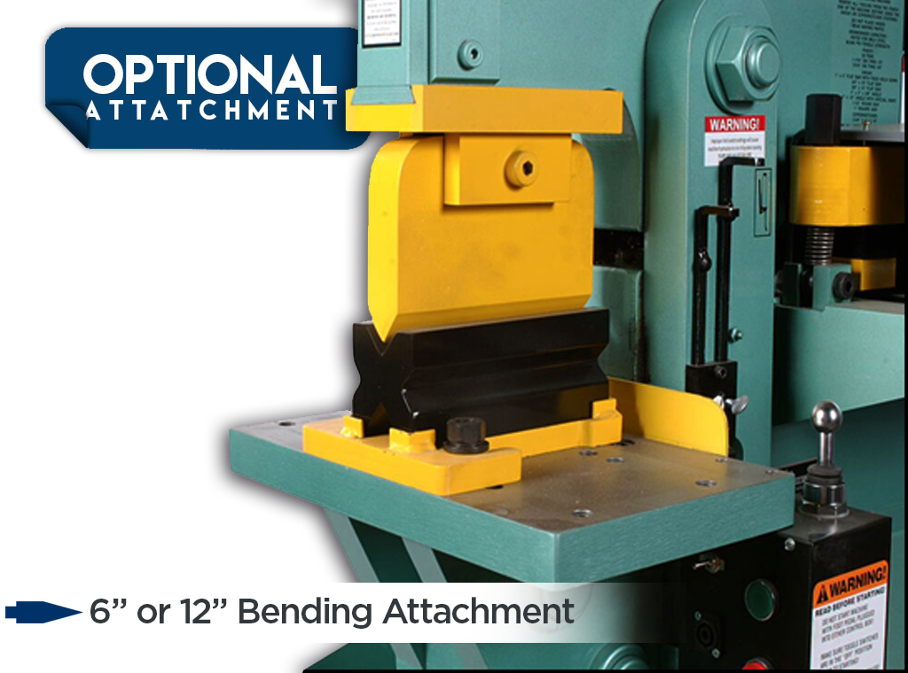 Punching 13/16" Diameter through 3/4" Plate Throat Depth 5 inches Bending (Optional) 6 up to 12 w/4-way die block Round Bar Shear (with optional knives) 1/4" through 1 3/8" Square Bar Shear (with optional knives) 1/2" through 1" Flat Bar Shear 12" x 3/8", 10" x 1/2, 6 x 3/4 Angle Shear 3" x 3" x 3/8" Coping/Notching ...more
