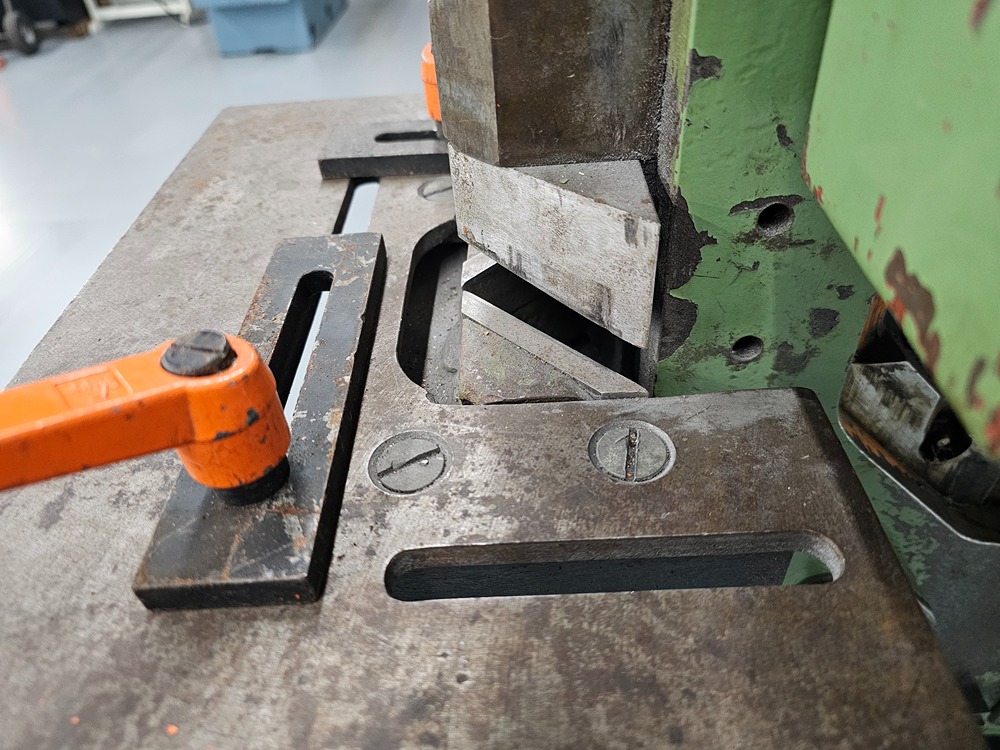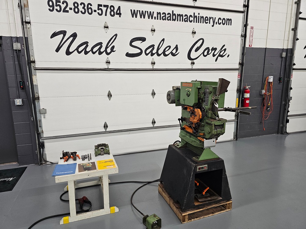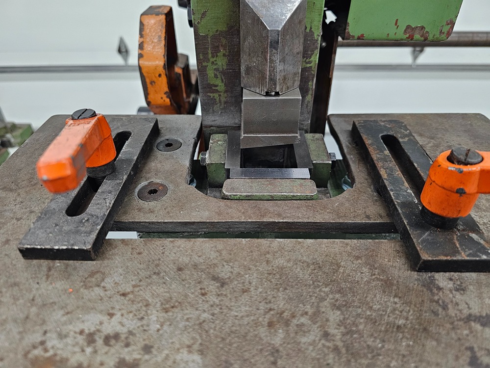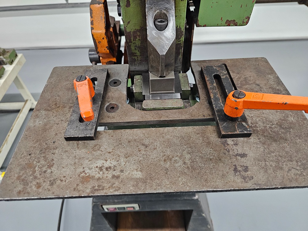 Inventory No. 0226-018-0001 Manufacturer Mubea Model No. JUNIOR BF 10 Name Ironworker Arrival Date 02-16-2026 Dimensions L x W x H (inches) 41 x 36 x 65 Electrical 1/60/230 Weight (lb.) 1075 Category Fabrication Condition Used Available Quantity 1 Item W/ Foot Pedal, Made In Germany.