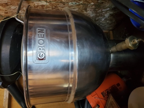 30 gallon Stainless Steel Steam Jacketed Kettle, 23-1/2" diameter, 17.5" H inside dim., 3/4" diameter & 1-1/2" diameter Inlet/outlet