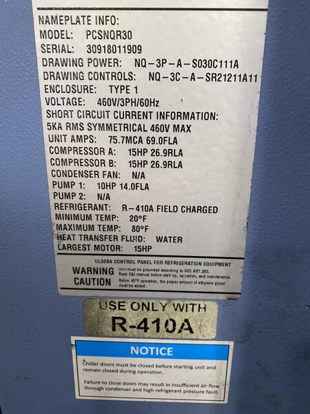 THE ICS-30RACD-460 CHILLER IS DESIGNED FOR HEAVY-DUTY INDUSTRIAL AND PROCESS COOLING APPLICATIONS, INTENDED FOR INDOOR INSTALLATION. IT PROVIDES APPROXIMATELY 30 TONS OF COOLING CAPACITY, POWERED BY A 460V/3-PHASE/60 HZ SUPPLY. THE SYSTEM S TWO 15 HP COMPRESSORS, TOTALING 30 HP, AND USES R404A REFRIGERANT. IT IS ...more