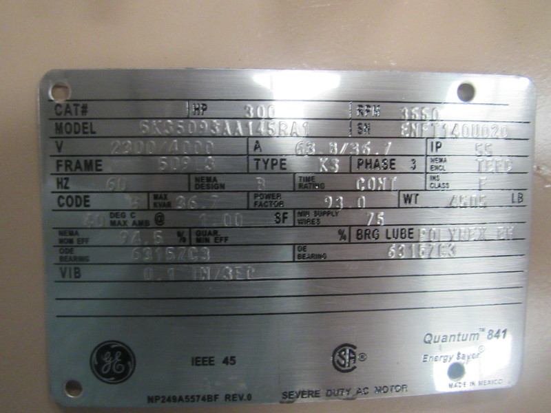300 HP 3600 RPM General Electric, Frame 507SS, TEFC, 2300/4000 Volts, IEEE 841 (NEW factory 5-year warranty) Q8014