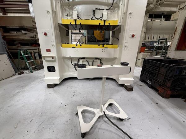 Equipment and Features Air Clutch and Brake Progressive Link Motion Drive - Reduces Snap-through - Increases Time in the Forming Portion of Stroke Dynamic Slide Balancing Automatic Recirculating Lube System Hydraulic Overload Protection 8-Point Oil Film Slide Guide System Micro Inch Capability 50 HP Main Motor, 460V 60HZ 11.8" Thick T-Slotted Bolster T-Stand Palm Buttons 35.5" Wide Windows Safety Doors Front and Back Flush Floor Standing