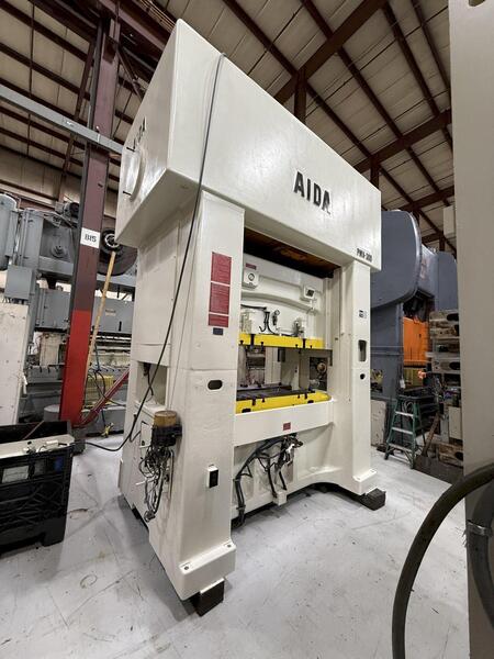 This Used 300-ton Aida PMX Press can be seen underpower in the S&G Press Livonia Michigan Warehouse.