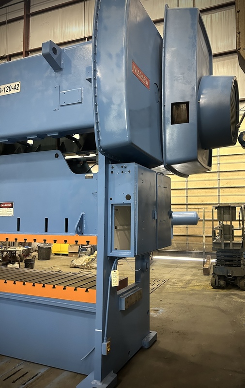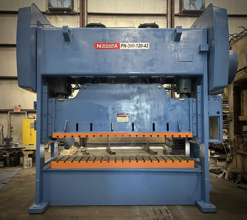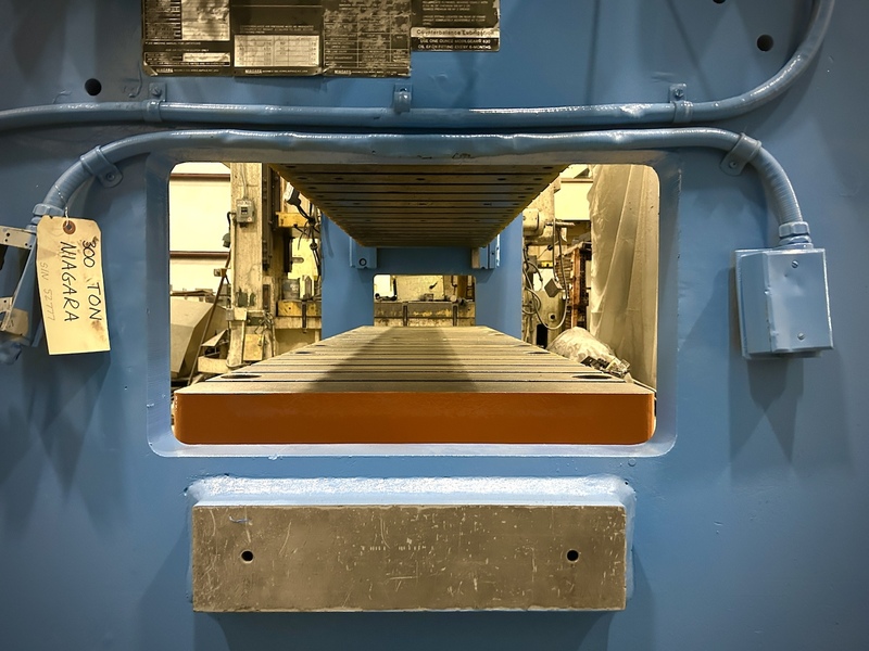 300 Ton, Niagara #PN-300-120-42, straight side double crank press, 6" stroke, 26" Shut Height, 50 SPM, 1992 Manufacturer: Niagara Model: PN-300-120-42 Year: 1992 Ton: 300 Stroke: 6.0 Shut Height: 26.0 Stock # 8020 Request a Quote 10 For Sale by Alma Machinery Co-Columbia TN Surplus Record Dealer Since 1960 Contact Seller Columbia, TN Ken King 615-36...> Show Seller's Phone Number 615-369-7788 Let the seller know you found their listing on Surplus Record! View More Alma Machinery Co-Columbia TN 's ListingsDescriptionCAPACITY:300 TONSTROKE:6"SHUT HEIGHT TO BED:26" (SDAU)BED AREA:120" X 30" (RL X FB)SPEED:25 - 50 SPM (VARIABLE)RAM ADJUSTMENT:6" motorizedWINDOW SIZE:30" W X 15" HBOLSTER SIZE:6" x 120 rl x 30" fb (approx.)FLOOR TO BED:30-1/4"CLUTCH:air clutch & brakeelectrics:30 hp 1750 rpm 480v-3-60 eddy current drive. will include new cieco 1100r6 press control for reconditioned price.APPROX. DIMENSIONS:13'6" h X 205" RL X 101" FBAPPROX. WEIGHT:86,000 LBS.Equipped WithAUTOMATIC LUBRICATION SYSTEM AIR COUNTERBALANCED RAM FLOOR STANDING BASENote__LocationThis Used Press is Located in Our Columbia, TN Warehouse Request More Information from SellerGet Your Price from Alma Machinery Co-Columbia TN! "*" indicates required fieldsName*Company*Email* PhoneZip / Postal Code*QuestionMake an OfferRequests Send me a shipping quote I am interested in financingSend Copy Email me a confirmation of this inquiryBuyer Protection Use our partner Escrow.com to buy or sell equipment safelyBuyer Protection Send me info about buyer protectionThis field is hidden when viewing the formDealer Email Buyers Who Viewed This Listing Also Viewed … 300 Ton, Bliss #SE4-300-120X84, 6" stroke, 28" Shut Height, 10" adjustment, 20-60 SPM, S/N 30165-1Category: Straight Side Double Crank (Single Act...Seller: Met-Pro Machinery IncLocation: Detroit, MI Mfr: BlissModel: SE4-300-120X84, 300 Ton BLISS Press, SE4-300 120 x 84, S/N: 30165-1, 300Ton, 6" Stroke, 28" Shut Height, 10" Adjustment, 20-60 SPM, Windows: 75.5" wide x 27", Bump Style Straight Cut Die, Removed & in storage. 300 Ton, Minster #E2-300-60-36, straight side double crank press, 6" stroke, 32" Shut Height, 6" ram adj., 120 SPM, 60" x36"bed, air clutch & brake, 23" window, 1991Category: Straight Side Double Crank (Single Act...Seller: D & D Industries IncLocation: Monclova, OH Mfr: MinsterModel: E2-300-60-36Year: 19916" Stroke, 6" Ram Adjustment, 32" Shut Height, 0-120 Spm, 60" x 36" Ram, 60 x 36" Bed, Air Clutch, Air Brake, Air Counterbalances, 23" Windows, Floor Standing, Palm Buttons, T - Slotted Ram And Bolster, 6" Extra Bolster Plate, 129" LR x 98" FB x 209" Tall, Estimated Weight 90,000 LBS. 300 Ton, Minster #S2-300, straight side press, 6" stroke, 22.5" Shut Height, 50 SPM, 14" adjustmentCategory: Straight Side Double Crank (Single Act...Seller: Galaxie CorporationLocation: Wayne, MI Mfr: MinsterModel: S2-300Year: 1977Stock # 102171, Condition Used, Tonnage 300 tons Stroke 6 inches Shut Height 22.5 inches SPM 50 Bed W 60 inches Bed L 48 inches Bed Size: 60'' x 48'' Stroke: 6'' Shut Height: 22.5'' Adjustment: 14'' Minimum Shut Height: 10'' Speed: 0-50 SPM Window: 24'' x 20.5''. 300 Ton, Sutherland #SP2-D-30096-48-16, straight side double crank, 6" stroke, 32" Shut Height, 8" adj., 20-40 SPM, 50 HP, ControlCategory: Straight Side Double Crank (Single Act...Seller: G-2000Location: Toledo, OH Mfr: SutherlandModel: SP2-D-30096-48-16MODEL.: SP2-D-300-96-48-16, TONNAGE.: 330 TON, STROKE.: 16", SHUT-HEIGHT.: 32", ADJUSTMENT.: 8", STROKES PER MINUTE.: 20 TO 40 VARIABLE SPEED, BOLSTER DIMENSIONS.: 96" L-R X 48" F-B, SLIDE DIMENSIONS.: 96" L-R X 48" F-B, BOLSTER THICKNESS.: 8", WINDOW DIMENSIONS.: 40" X 48", MOTOR HP.: 50 HP, BRONZE REPLACEABLE GIBBS ...more 300 Ton, Minster #E2-300, straight side double crank press, 6" stroke, 32" Shut Height, 6" adj., 60" x36"bed, 0-120 SPM, 1993,S45207Category: Straight Side Double Crank (Single Act...Seller: Perfection GlobalLocation: Monclova, OH Mfr: MinsterModel: E2-300Year: 1993Capacity: 300 TonStroke: 6"Ram Adjustment: 6"Shut Height: 32"Bed: 60" x 30"Ram: 60" x 30"Speed: 0-120 SPMWindows: 23", Air ClutchAir BrakeAir CounterbalancesPalm ButtonsT-Slotted Ram and Bolster6" Extra Bolster PlateFloor Standing.Share × "*" indicates required fieldsYour Name*Your Email* Recipient's Email* Note to Recipient
