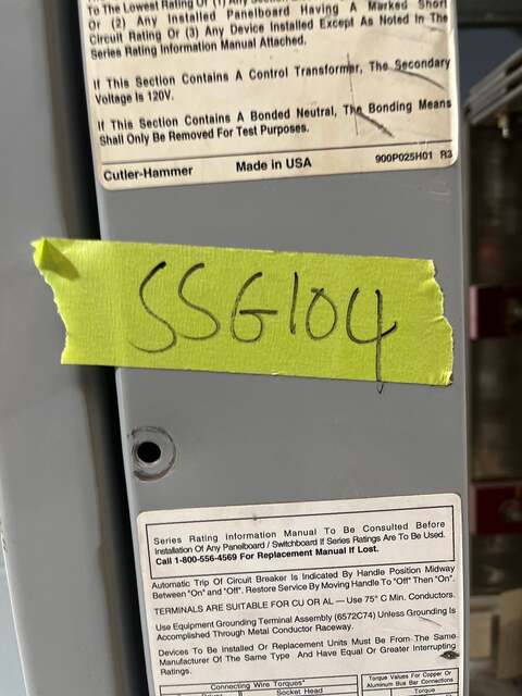 3000 Amp. Eaton, Cutler Hammer, 480/277 Volts Switchboard Main Breaker