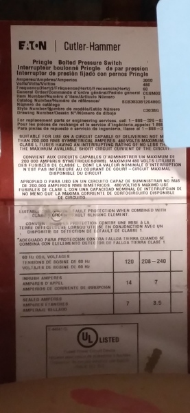 3000 Amp. General Electric, THP3630BET1, HPC switch
