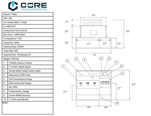 300 KVA 24940GrdY/14400 Primary, 480Y/277 Secondary, Core Transformer PAD, Recon(shipment available in 10 days) Manufacturer: Core Transformer kVA: 300.000 Primary Voltage: 24940 - 14400 Secondary Voltage: 480 - 277 Stock # T1983 Request a Quote For Sale by Core Transformers Surplus Record Dealer Since 2022 Contact Seller Seneca, SC Mitch Garland 888-67...> Show Seller's Phone Number 888-678-2673 Let the seller know you found their listing on Surplus Record! View More Core Transformers ' ListingsGet Your Price from Core Transformers! "*" indicates required fieldsName*Company*Email* PhoneZip / Postal Code*QuestionMake an OfferRequests Send me a shipping quote I am interested in financingSend Copy Email me a confirmation of this inquiryBuyer Protection Use our partner Escrow.com to buy or sell equipment safelyBuyer Protection Send me info about buyer protectionThis field is hidden when viewing the formDealer Email Buyers Who Viewed This Listing Also Viewed …JUST ADDED! 300 KVA 24940GY/14400 Primary, 480Y/277 Secondary, 3 phase, Padmount TransformerCategory: 60 Hz Three Phase Padmount Transformer...Seller: Maddox Industrial TransformerLocation: Battle Ground, WA 300 KVA 12470GrdY/7200 x 24940GrdY/14400 Primary, 480Y/277 Secondary, 3 phase Pad Mount TransformerCategory: 60 Hz Three Phase Padmount Transformer...Seller: Sunbelt Solomon Services, LLCLocation: Temple, TX 300 KVA 24940Y/14400 Primary, 480Y/277 Secondary, 3 Phase, pad mount, 105 taps (3 available)Category: 60 Hz Three Phase Padmount Transformer...Seller: RTS Transformer IncLocation: Apopka, FL 300 KVA 24940Y/14400 Primary, 480Y/277 Secondary, (7 available)Category: 60 Hz Three Phase Padmount Transformer...Seller: T & R Electric Supply Co IncLocation: Colman, SD 300 KVA 13200GrdY/7620 x 24940GrdY/14400 Primary, 480Y/277 Secondary, 3 phase Pad Mount TransformerCategory: 60 Hz Three Phase Padmount Transformer...Seller: Sunbelt Solomon Services, LLCLocation: Temple, TXShare × "*" indicates required fieldsYour Name*Your Email* Recipient's Email* Note to Recipient