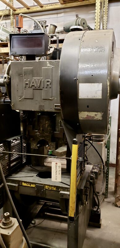 | capacity | 35 ton | stroke | 3" | MAX SHUT HEIGHT TO BED | 9.875" SDAU | BED AREA | 28.5" X 15" (rl x FB) | SPEED | 120 SPM | slide adjustment | 2" - MANUAL | slide area | 10" RL X 8.75" FB (WILL INCLUDE NEW SLIDE SHANK HOLDER FOR RECONDITIONED PRICE) | BOLSTER PLATE | 1.75" H X 28.5" RL X 15" FB (T-SLOTTED) | DIST UPRIGHTS / FLOOR TO BED | 12.5" / 30" | CLUTCH | EATON AIRFLEX CLUTCH & BRAKE | ELECTRICS | 5 HP 1750 RPM 240/480V-3-60 REEVES DRIVE & MODERN RELAY CONTROL | APPROX DIMENSIONS | 8.5' H X 5' RL X 5' FB | APPROX WEIGHT | 5,000 LBS | SLIDE SHANK SIZE | 2.5" OD | Equipped With | FEEDER NOT INCLUDED. | Note | __ |