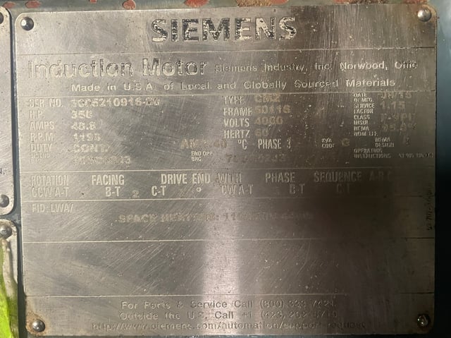 350 HP 1200 RPM Siemens, Frame 5011S, TEFC BB, 4000 Volts (2 available) Manufacturer: Siemens Frame: 5011S HP: 350.00 RPM: 1200 Enclosure: tefc bb Volts: 4000 - 4000 Request a Quote 3 For Sale by Romanoff Industries Inc Surplus Record Dealer Since 1956 Contact Seller Toledo, OH Jay/Ryan /Aaron 419-78...> Show Seller's Phone Number 419-780-2740 Let the seller know you found their listing on Surplus Record! View More Romanoff Industries Inc 's ListingsGet Your Price from Romanoff Industries Inc! "*" indicates required fieldsName*Company*Email* PhoneZip / Postal Code*QuestionMake an OfferRequests Send me a shipping quote I am interested in financingSend Copy Email me a confirmation of this inquiryBuyer Protection Use our partner Escrow.com to buy or sell equipment safelyBuyer Protection Send me info about buyer protectionThis field is hidden when viewing the formDealer Email Buyers Who Viewed This Listing Also Viewed … 350 HP 3600 RPM Siemens, Frame 5011S, BB, 2300/4000 Volts, NewCategory: Squirrel Cage AC Electric MotorSeller: ESR Motor Systems LLCLocation: Rock Hill, SC Mfr: SiemensFrame: 5011S 350 HP 3600 RPM Marathon, Frame 5011S, TEFC, 2300 Volts, cat #y260Category: Squirrel Cage AC Electric MotorSeller: Jet Electric Motor CoLocation: Pawtucket, RI Mfr: MarathonFrame: 5011S 350 HP 1186 RPM Siemens, Frame 5011S, TEFC, BB, 575 Volts (2 available)Category: Squirrel Cage AC Electric MotorSeller: North Carolina Motors & Controls IncLocation: Bailey, NC Mfr: SiemensFrame: 5011S 350 HP 1188 RPM Siemens, Frame 5011S, TEFCBB, Space-heaters, 2300/4000 VoltsCategory: Squirrel Cage AC Electric MotorSeller: Doug Beat CoLocation: TOLEDO, OH Mfr: SiemensFrame: 5011S 350 HP 1200 RPM Siemens, Frame 5011S, TEFC, Ball, rebuilt, 460 VoltsCategory: Squirrel Cage AC Electric MotorSeller: Bailey SurplusLocation: Santa Rosa, FL Mfr: SiemensFrame: 5011SShare × "*" indicates required fieldsYour Name*Your Email* Recipient's Email* Note to Recipient