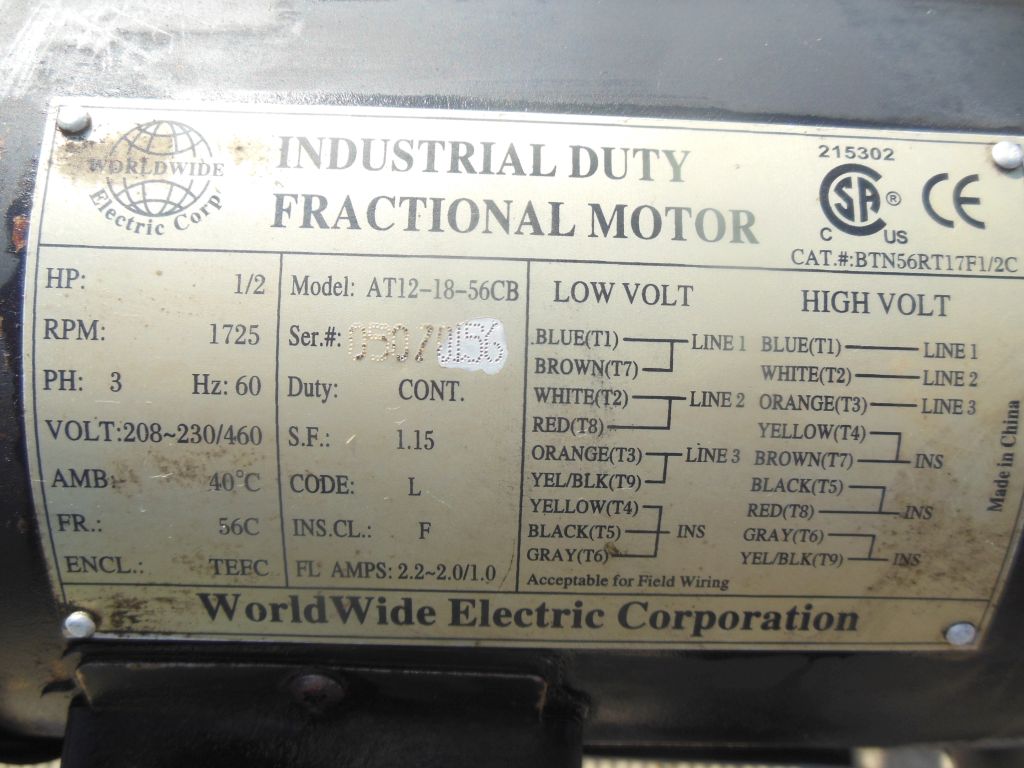 Voltage: 110VAC, 1 phase, 60Hz, Model: L12W36.