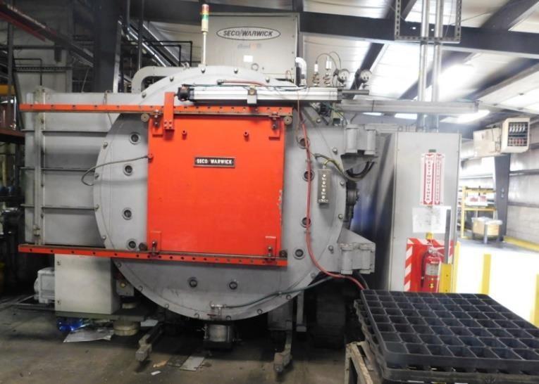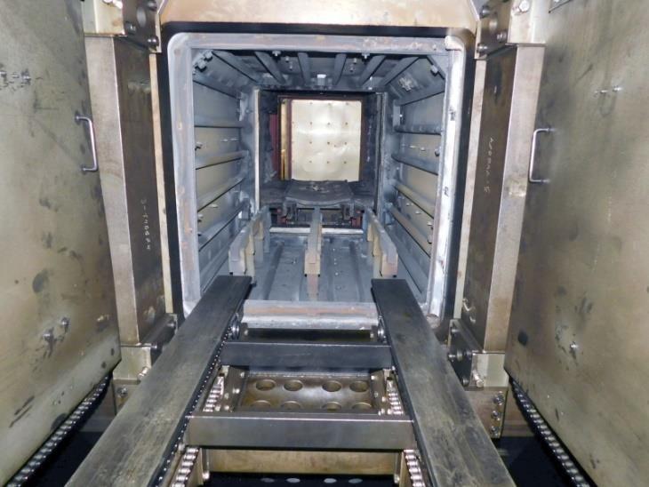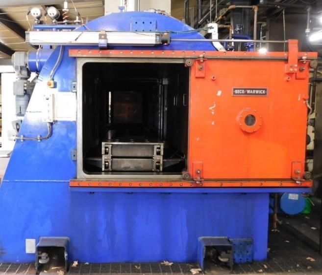 HORIZONTAL DOUBLE WALL WATER COOLED CHAMBER WITH SINGLE SIDE SWING BOLT DOWN FRONT DOOR. VACUUM PUMPS EVACUATE THE VESSEL WHICH IS THEN BACK FILLED WITH NITROGEN. HEAT IS SUPPLIED BY COIL TYPE HEATING ELEMENTS BEHIND A PROTECTIVE SCHROUD. HEATED AIR IS CIRCULATED BY A ROOF MOUNTED FAN.