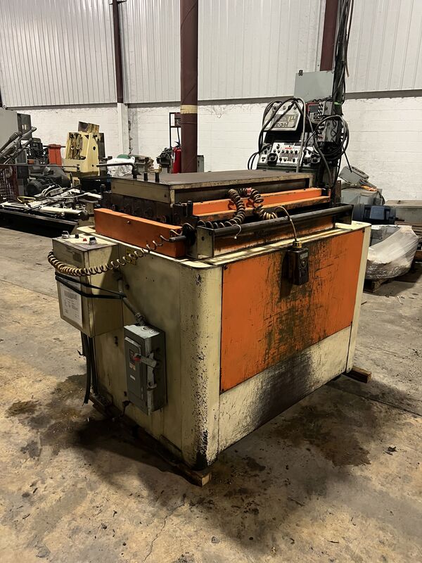 MODEL: 1000-3-11, SERIAL #: 7962, 36" MAXIMUM MATERIAL WIDTH,.020-.100 MAXIMUM MATERIAL THICKNESS, 7 ROLL STRAIGHTENER, ENTRY & EXIT PINCH ROLLS WITH LIFT, VARIABLE SPEED, LOOP ARM CONTROL, CASCADE ROLLS, YEAR: 1987, 3" DIAMETER STRAIGTENING ROLLS, 5 HP MOTOR, 230/460 VOLTAGE, APPROX. DIMENSIONS: 6' LR x 7' FB x ...more
