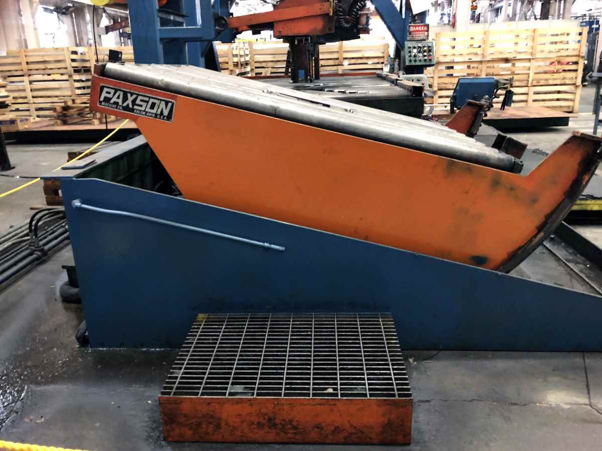 60" x 10" Paxson, slitting line, 60.7:1 gear reducer, 20" -24" hydraulic expansion Manufacturer: Paxson Width: 60.0 Arbor or Max Thickness: 10.000 Stock # 3866 Request a Quote 10 For Sale by Universal Tube & Rollform Surplus Record Dealer Since 1984 Contact Seller Perrysburg, OH Sales Dept. 419-87...> Show Seller's Phone Number 419-872-2364 Let the seller know you found their listing on Surplus Record! View More Universal Tube & Rollform 's ListingsDescriptionUTUBE NUMBER: 3866MANUFACTURER: PAXSONYEAR: 1981SPECIFICATIONS:Material: HRS, CRS, HRPO, Galvanized / Maximum Strength: 50,000 PSI Shear, 40,000 PSI YieldThickness: .015″ – .250″Coil Weight Capacity: 40,000 lbs.Coil Width (Maximum): 60″ Trimmed, 62″ UntrimmedCoil I.D.: Entry: 20″ – 24″ / Exit 20″Coil O.D.: Entry: 42″ – 72″ / Exit: 42″ – 72″Line Speed: Two-Speed, 130 and 390 FPM @ bare drumLine Direction: Right to LeftMode of Operation: Pull-Thru & Drive AssistSlitter Cut Capacity:Distance Between Collars32″38″44″50″56″62″Gauge130 FPM390 FPM130 FPM390 FPM130 FPM390 FPM130 FPM390 FPM130 FPM390 FPM130 FPM390 FPM.250″17–17–17–17–14–11–.218″22–22–22–22–16–12–.187″303303303253193153.156″306306306306236176.125″301130113011301129112211.078″303030303030303030303030.062″303030303030303030303030.050303030303030303030303030EQUIPPED WITH:Entry Coil Car:S/N 11700-1L-TypeSelf-Contained Hydraulic Power UnitHydraulic Lift & TravelUncoiler:S/N 11700-3-4-82Hydraulic Expansion: 20″ – 24″4-Segment Pumpkin Tooth MandrelPowered Overarm Hold-DownSlide BaseHydraulic Motor Feed-upWater Cooled BrakeHydraulic Peeler Table:S/N 11700-2-3-82Slitter Entry Unit:S/N 11700-4-3-82Driven Pinch RollsIndependent Manual Adj. Roller Side GuidesRoller Crop ShearSlitter Head:Removable Type, (1) HeadOver Arbor Outboard – Can Travel up to 36″ Wide150 HP DC Motor, 1750/2000 RPM, 500 VReducer w/60.7:1 ratioPinion StandArbors: 10″ DiameterHydraulic Lift Table for ThreadingRecoiler:S/N 11700-7Face Drum: 20″ Dia. x 65″Hydraulic Grip & ExpandOverarm Separator100 HP DC Motor 650/1950 RPM, 500 VIntegral Reducer w/24:1 ratio2 Speed Drive-All Transmission w/1:1 and 3:1 ratiosExit Coil Car:L-TypeHold-down ArmKeeper ArmsStrapping Slots in BaseSelf-Contained Hydraulic Power UnitHydraulic Lift and Travel2-Arm Turnstile:S/N 11702-50Power Rotation(2) Heavy Duty Scrap Winders:S/N 11700-9-3-82Opposed ConesLevel WindAuto DumpHydraulic Motor DriveSlitter Tooling:Large amount of Knives, Spacers and RubbersOperators PanelsHydraulic Power UnitsThe line is installed and under power, can be viewed in-person by appointmentSearching for a Specific Machine?Our inventory is always changing, contact us for help finding the machinery that you require. Additionally, we offer a range of new machinery options tailored to your specific requirements.Automation SolutionsWe specialize in designing, manufacturing, and installing control panels, drive systems, die accelerators, and other essential components for industrial metalworking machinery. Our knowledgeable team has over a century of collective experience specializing in tube, pipe, and rollform machinery, allowing us to deliver efficient and economical automation solutions to metal-forming manufacturers worldwide.Start-Up and Service SupportOur in-house engineering and service team offers comprehensive support services, covering installation management, start-up and commissioning, operator training, on-site service, technical support, and more. Moreover, we prioritize quick machinery implementation and offer ongoing assistance to uphold its efficiency over time.Parts and ConsumablesTo minimize downtime and ensure long-term efficiency, we maintain a stock of common replacement parts at our Perrysburg, Ohio warehouse. Furthermore, our dedicated team ensures prompt delivery to keep your operations running smoothly.Machinery Reconditioning ServicesWe offer machine reconditioning and rebuilding services for your current machinery, along with the options to update to the latest technology, expand capabilities and improve performance. Reusing your equipment increases the value of your initial investment and ensures more accurate and reliable productions, enhanced safety, and ease of operation.Selling Your Machinery Made EasyWhether you have one machine or an entire plant to sell, we are interested in purchasing tube mills, rollformers, coil handling machinery, and other industrial metalworking machinery. Our selling options include immediate cash sale, trade-in, consignment, and auction. Get in touch with us today to discover more about our services and how we can assist you in achieving your selling goals. Request More Information from SellerGet Your Price from Universal Tube & Rollform! "*" indicates required fieldsName*Company*Email* PhoneZip / Postal Code*QuestionMake an OfferRequests Send me a shipping quote I am interested in financingSend Copy Email me a confirmation of this inquiryBuyer Protection Use our partner Escrow.com to buy or sell equipment safelyBuyer Protection Send me info about buyer protectionThis field is hidden when viewing the formDealer Email Buyers Who Viewed This Listing Also Viewed … 60" x 9" Pro-Eco Slitting Line, 0.02"-0.25", 72" max outside dimension, 20"-24" ID, 50,000 lb, LR, w/ extra parts, 1991Category: Slitting LinesSeller: VX MachineryLocation: Sylvania, OH Mfr: Pro-EcoYear: 1991, Manufacturer: Pro-Eco, Year: 1991, Line Direction: Left to Right, Coil Width: 60”, Thickness:.020" - 0.250” (1/4”), Max Coil Weight: 50,000 lbs., Max OD: 72”, Coil ID Range: 20”–24”, Line Includes:, Entry Coil Car, – Above-floor hydraulic design, – 48” wide ...moreJUST ADDED! 60" x 0.135" Cincinnati Herr Voss, Slitting Line, 50,000 lb., 16-24" ID, 72" outside dimension, 1600 FPM, LRCategory: Slitting LinesSeller: Midwest Machinery LLCLocation: Livonia, MI Mfr: Herr VossMake: Cincinnati - Herr Voss, Material Width: 12" - 60", Material Th