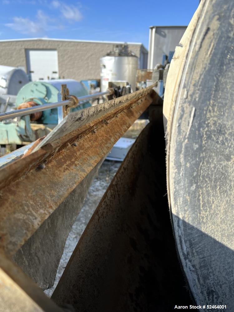Ametek 10' diameter X 20' face rotary vacuum pre-coat filter, approximately 600 square feet surface area, stainless steel construction. Unit has (2) 100 HP Nash vacuum pumps, stainless steel drum with drum drive, advancing knife mechanism with stainless steel cutoff knife, stainless steel rocker agitator arm ...more