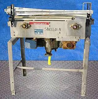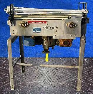 General Conveyor Co. Stainless Steel Table Top Conveyor. S/N: 940640. (2) 6 in. sprockets with 1 in. gap between gear teeth. Maximum conveyor belt width: 4-1/2 in. SEW Motor and drive:1 hp, 450-2230 rpm, 230/460V, 3.9/1.95 amps. 60 Hz, 3 phase. Infeed/outfeed height: 35 in. Overall Dimensions: 36 in. L x 21 in. W x 42 in. H.