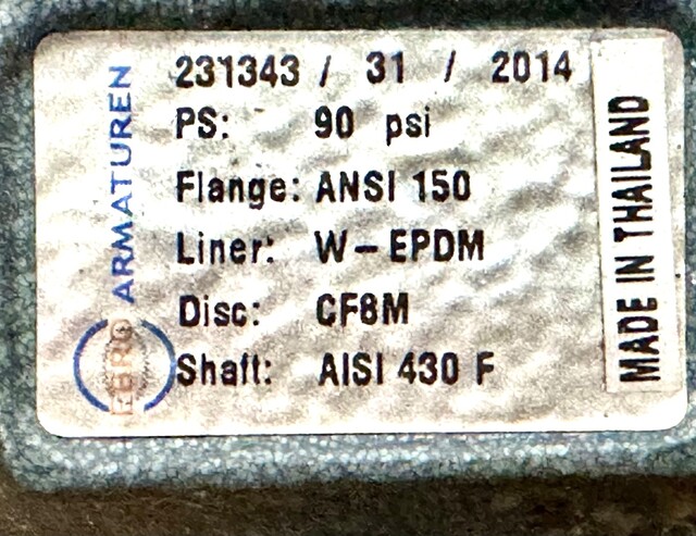 Inventory No. 1219-124-0512 Manufacturer Definox Model No. DPAX DN100 Name Butterfly Valve Arrival Date 10-24-2025 Dimensions L x W x H (inches) 22 x 8 x 7 Capacity 4" Weight (lb.) 25 Category Pumps Condition New other (see ) Available Quantity 1 Serial No. 000180 Item New No Box.