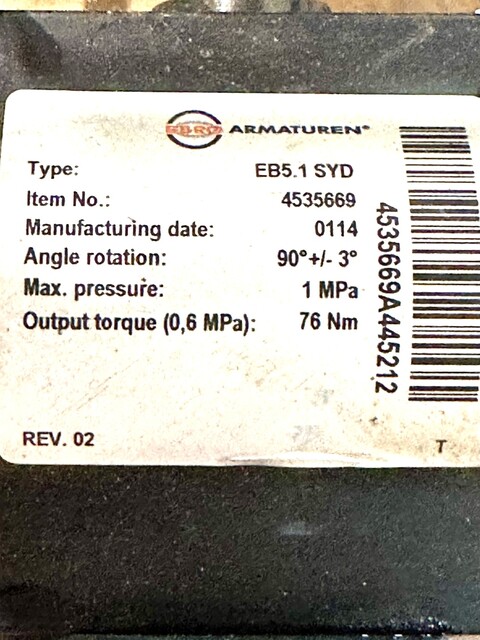 ITEM 2644-1: 4” EBRO BUTTERFLY VALVE DN100 PN16 Z011-A TYPE EB5.1SYD