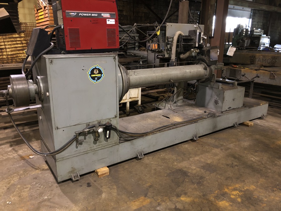 48" x 96" Jetline #CW3-96 Welding Lathe, pneumatic tailstock & headstock, Airco CV-300 II power supply, Tag #15681