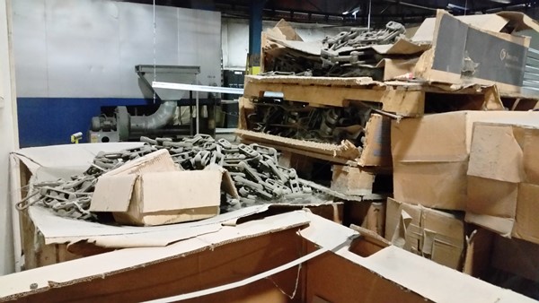 21ft Drag chain conveyor, Trough outside width 17”+-, inside width 13”, Outside length: 21ft+--, inside length 19ft+, Chain flites 2ft OC. +-, U.S. Motor : 1 hp, volts: 208-230/460, RPM: 1750, Gear box ratio 25.7 to 1, output RPM 68 +-, Can provide demonstration video of conveyor running, Price $2,900. ...more