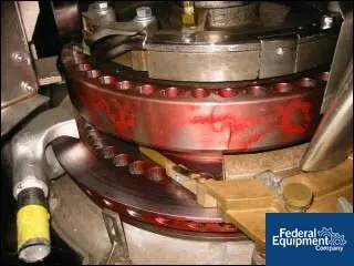 Colton automatic 35 station rotary tablet press. Rated up to 1500 tablets per minute – depending on size, shape, depth and product being run. Maximum pressure (above and below): 4 Tons. Maximum tablet diameter: 7/16". Maximum fill depth: 11/16". Punch Length: Upper 5-1/4" lower 5-1/4" Punch ...more