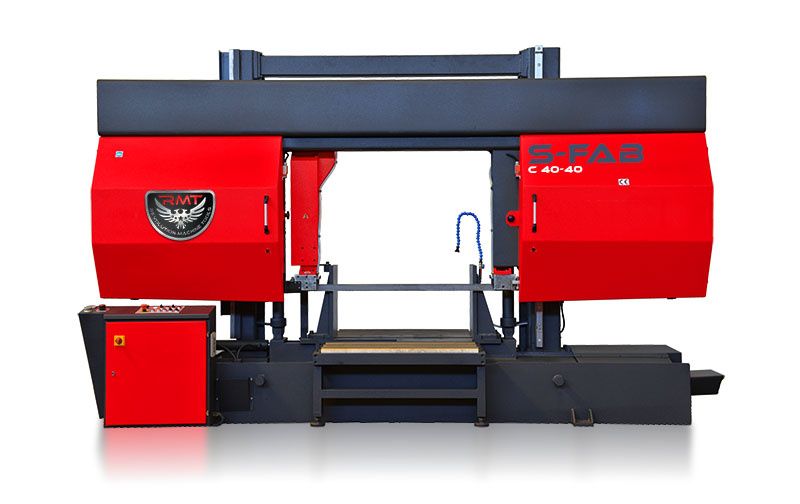 The Revolution Machine Tools™ S-FAB™ C 40-40 Semi-Automatic Column Type Bandsaws are ideal models for material cutting with variable number of cuts. The cutting capacity of this machine is 40” x 40” in 90° flat cuttings and Ø40” in round material. Our machines do the cutting hydraulically. After the cutting is finished, the upper body automatically rises to the cutting height. For the next cut, the material is manually driven up to the stop and the cut is repeated.