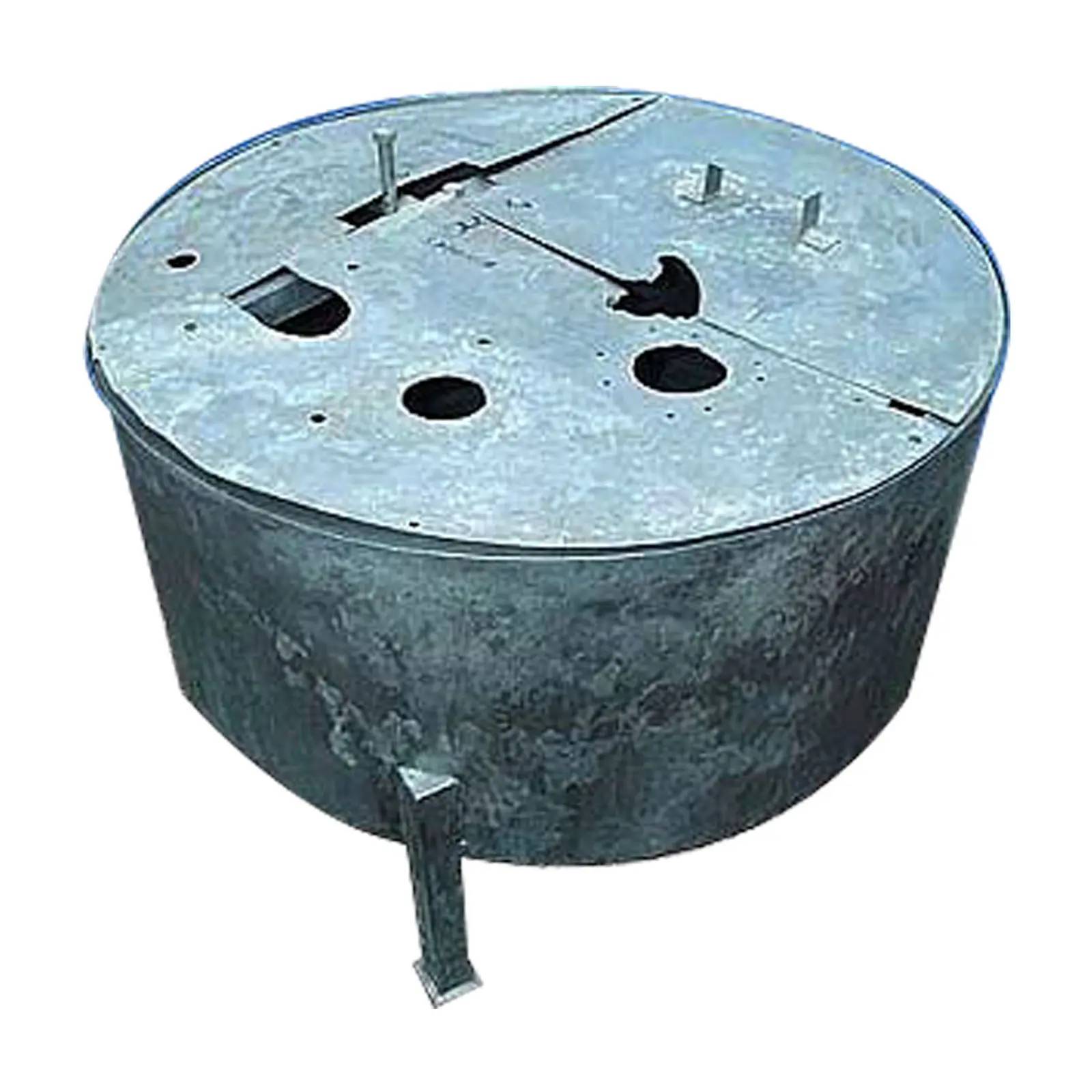 Stainless Steel Tank- 40 Gallon. Three-piece cover. Inlets: (1) 4 in. dia. port, (1) 3 in. dia. port, (1) 2-1/2 in. dia. port. Outlets: (1) 2 in. dia. pipe. Overall dimensions: 31 in. L x 31 in. W x 22 in. H.