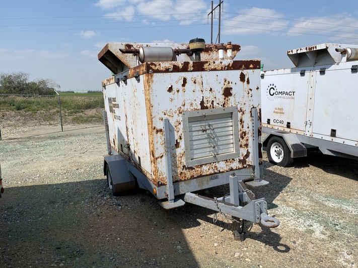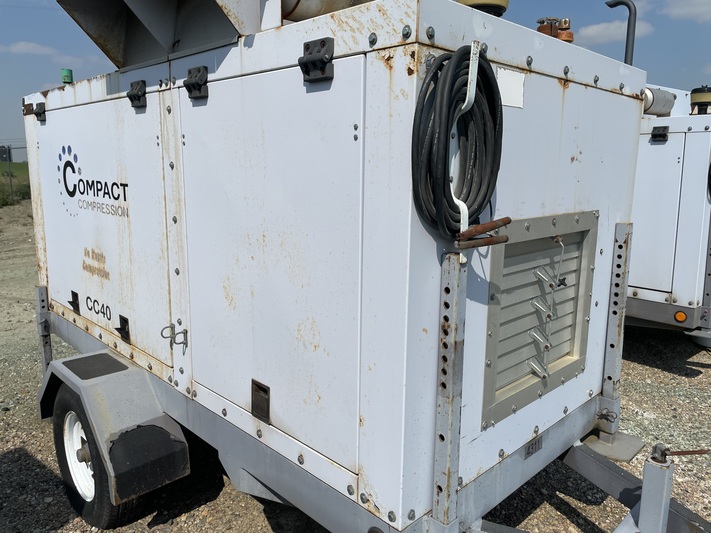 Available for sale is a 2005 CC40 model compressor manufactured by GM, featuring a natural gas driver with a maximum horsepower of 40 and rated RPM of 2250. This unit has been shut down in 2023 and is currently in disconnected operational status. It includes a screw compressor type and is trailer mounted for easy transport. Located in Wilton, SK, Canada.