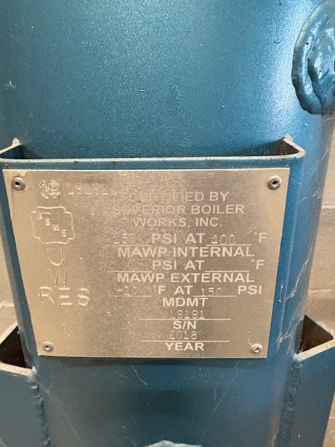 Excellent Condition 40 HP Superior fire tube boiler set, 150 psi steam, gas or propane fired. Model 8-5-200. Year 2019, used for two years before plant closed. Set includes Superior feed water tank with two vertical Grundfoss pumps and a Superior blow down separator tank with aftercooler. Price is $75,000 for the set. Will sell the boiler separately for $60,000. Price includes loading. Guaranteed to pass state inspection. Call or text Terry at 817-465-9912 / texasequipmentsales@gmail.com.