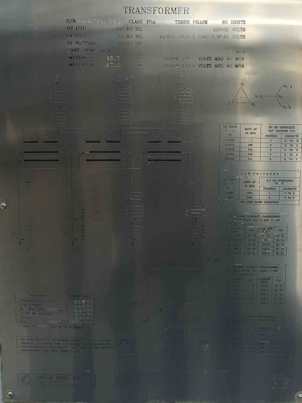 HIGH VOLTAGE: 115000 DELTA BIL: 450 KV
