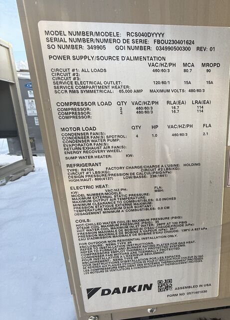Quantity Available (32) , 460v 3 Phase 60Hz R410A Cooling 4 Compressors