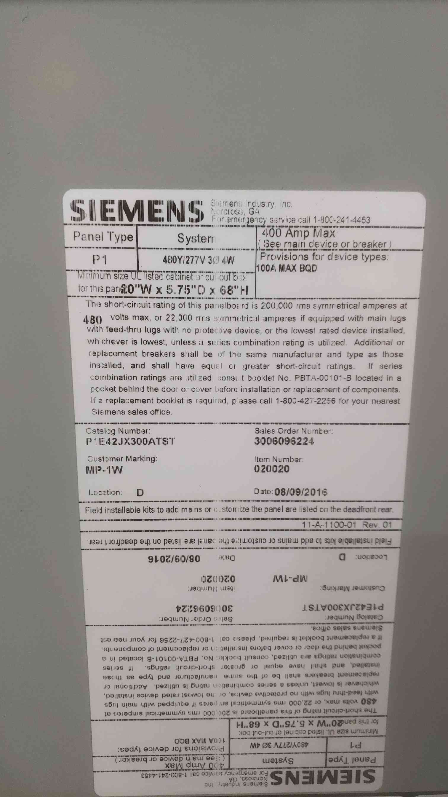 Square D HCP I-Line Panelboard 400 Amp 480Y/277 VAC 3 Phase 4 Wire 18 Space NOS, Brand: Square DType: HCP I-Line PanelboardMPN: 12354937080080001400 AmpSeries: E1480Y/277 VAC3 Phase4 Wire18 Space, New old stock, in box. Check pictures/video as the Item pictured is the exact item you will receive., Freight items ...more