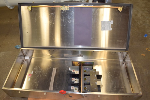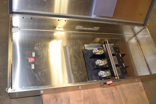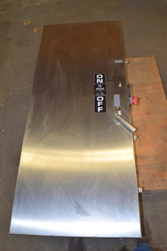 400 amp stainless steel disconnect, GE Heavy Duty safety switch 400 amp 600 V. ac, HP350, UL listed, Type 1, 4, 4X, 5, 12, enclosure suiteable for use as Service equipment, G.E. catalog# THN3365SS, model:10, Amps 400A, Volts: 600 Vac/ 250Vdc,. 3 phase, dimensions 24 1/2 inches wide X 2 1/2 inches deep X 59 1/2 inches tall, View all photos for all the factory labels/tag for information. Call for a delivered price.