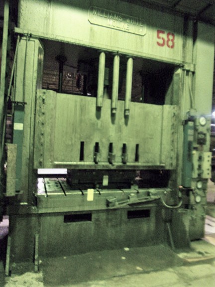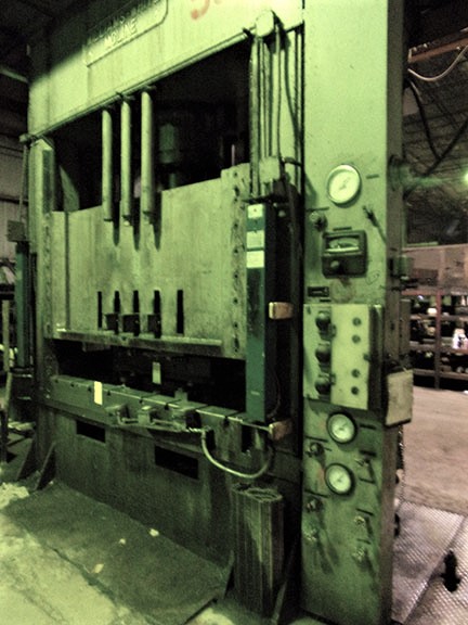 400 Ton, Pacific #400D8-54, hydraulic straight side press, 30" stroke, 36" Shut Height, 54" x99" bed, 1977