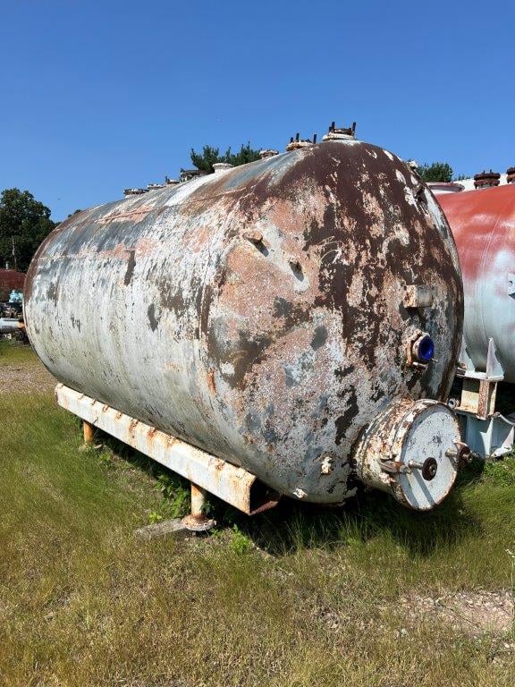 Used approximately 5000 gallon Pfaudler Chemstor glass lined tank. 8'6" O.D. X 10'6" straight length. Welded dished heads. With Series 2711 glass. Rated 30 psi at 300 deg. F. Built 1975. Serial #R265-0638. Openings top: (1) 18" manway W/cover, (2) 3", (1) 4", (1) dished side, (2)3" for stand glass, (1) 3" for ...more